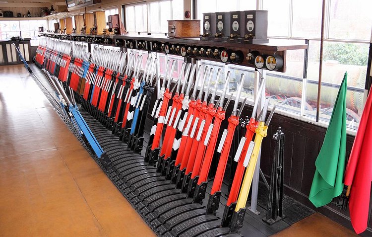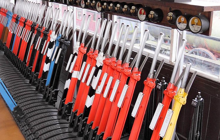 The lever frame inside Exeter West signalbox. Photo Nick Broome 12th March 2011. |