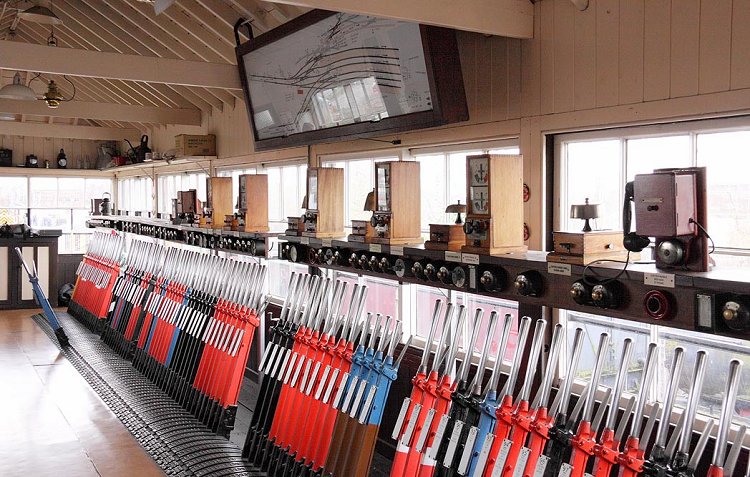 Telegraph instruments and lever frame inside Exeter West signalbox. Photo Nick Broome 12th March 2011. |