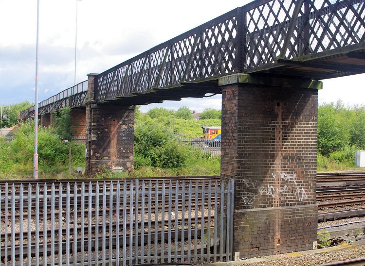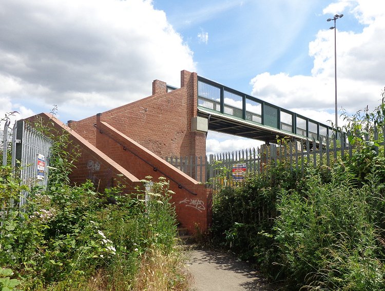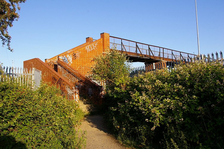 ![]() Footbridge seen from the steps at the Douglas Road end. Photo 11th July 2012. |