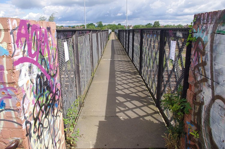 View along the footbridge from the Douglas Avenue end. Photo 11th July 2012. |