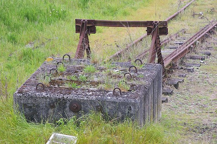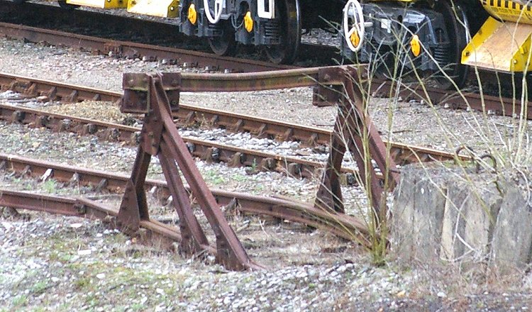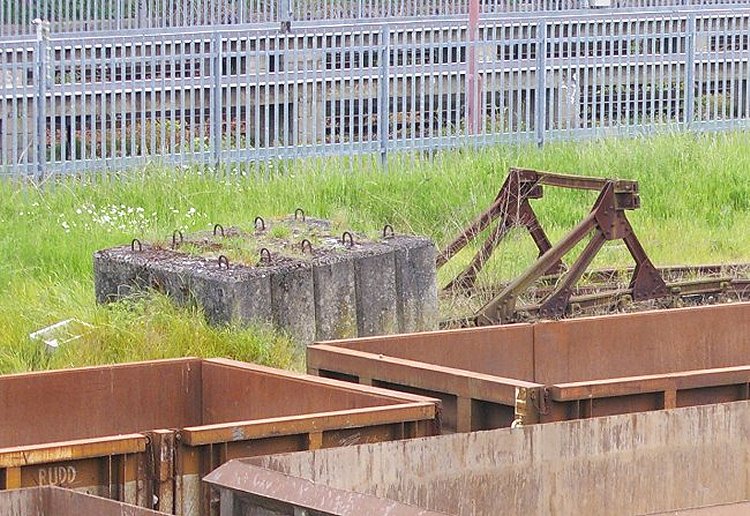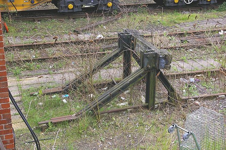 ![]() Buffer stop with concrete weights at Tonbridge West Yard. Photo 30 May 2008. |